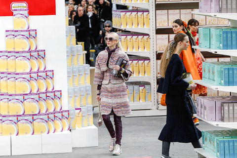 CHANEL设计师Karl Lagerfeld把巴黎大皇宫装修成了大型超市的模样,让模特们在本季的巴黎时装周上一边购物一边走秀。